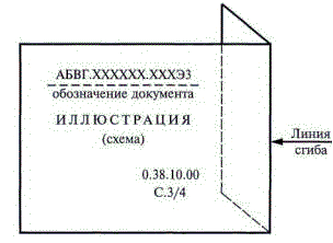 А.1.15 При расположении иллюстрации на листе увеличенного формата фальцовка листа должна обеспечивать видимость номера страницы. Незаполненная страница (обратная сторона фальцованного листа) должна быть обозначена на предыдущей странице в виде дроби. Пример оформления листов увеличенного формата (правила фальцовки) приведен на рисунке А.1.