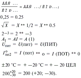 2. Сложные формулы и записи допускается выполнять текстом, например "I_o x R_hвх" = Произведение нулевого тока на сопротивление нагрузки должно быть больше или равно постоянной времени входа".