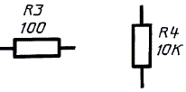 при указании номиналов резисторов и конденсаторов около их условных графических обозначений (черт. 4) не выполнять разделительную черту между их буквенно-цифровыми обозначениями и номиналами; обозначать К - единицу измерения сопротивления килоОм, МК - единицу измерения емкости микроФараду.