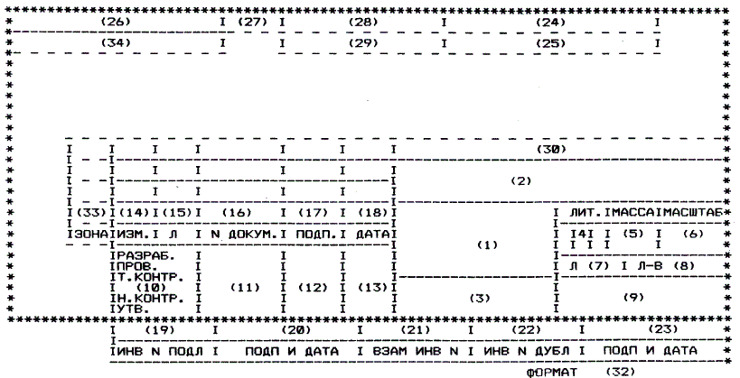 1. Допускается располагать дополнительные графы по ГОСТ 2.104, а также помещать содержащуюся в них информацию без нанесения граф. При этом допускается печатать слова сверху вниз. Графы 19-25 допускается также наносить штампом в поле подшивки на первом или заглавном листе, а на последующих листах эти графы не наносить.