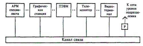 2.2.1. Объединение отдельных ЛВС уровней предприятия и цеха и интегрированной системы жизнеобеспечения предприятия должно осуществляться через ретрансляторы с помощью магистрального канала связи предприятия (черт. 1).