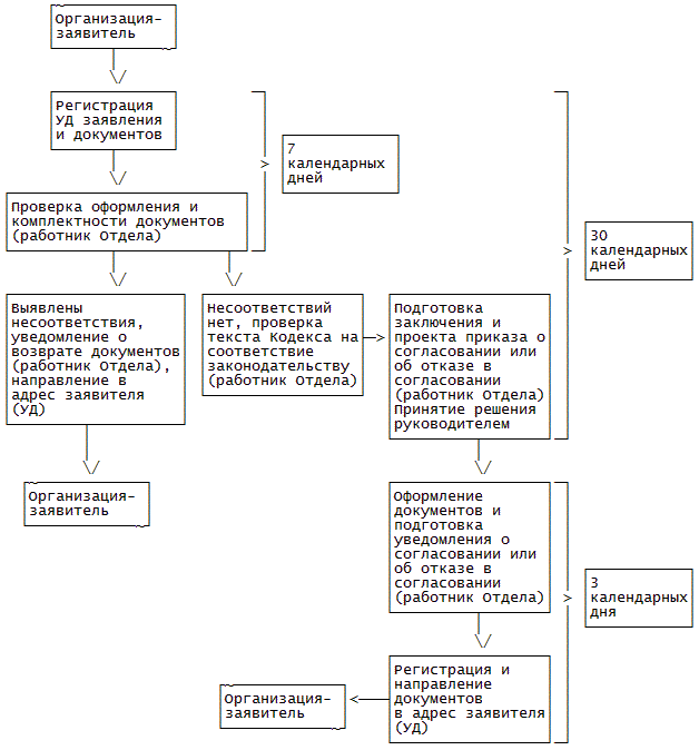 Руководитель ФСФР России принимает решение о согласовании либо об отказе в согласовании Кодекса в срок не позднее 30 календарных дней с даты регистрации УД заявления о предоставлении государственной услуги.