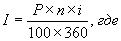 5. По векселю, выданному с платежом "по предъявлении" или "во столько-то времени после предъявления", в котором указывается размер процентной ставки, проценты начисляются и выплачиваются только при погашении векселя. При исчислении процентов количество дней в месяце условно принимается за 30, а в году - за 360. В месяцах, имеющих 31 день, 31 число в расчет не принимается, а в феврале остаток за последнее число повторяется столько раз, сколько дней недостает до 30. При расчете суммы процентов используется следующая формула:
