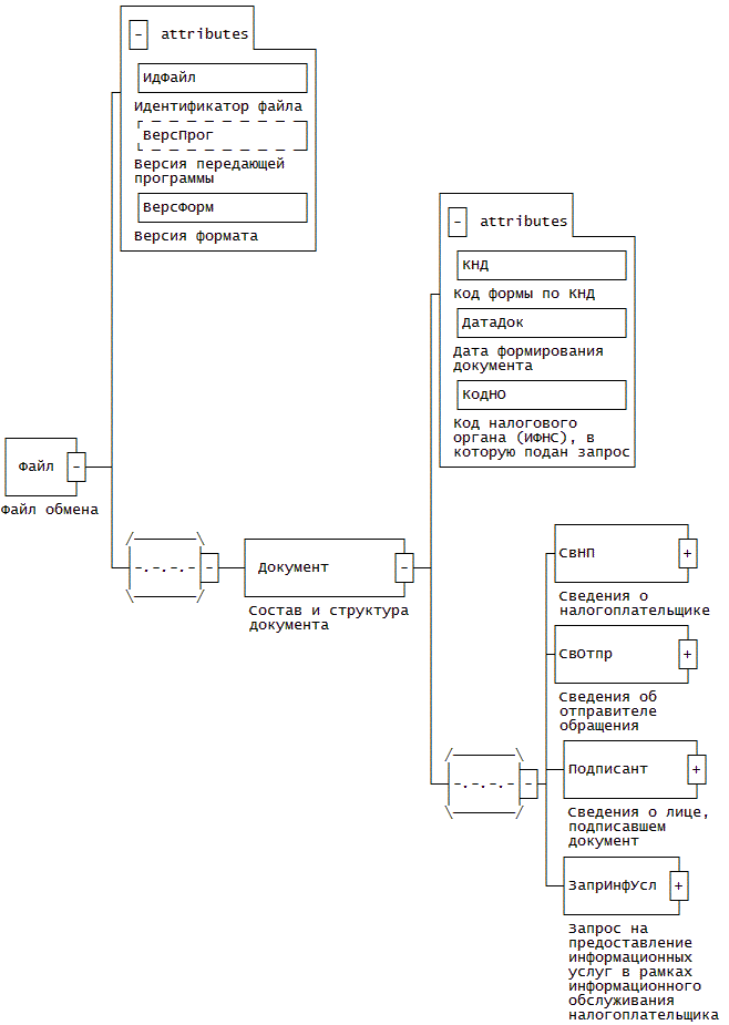Запрос - формируемый налогоплательщиком (представителем) для налогового органа в электронной форме запрос на предоставление информационных услуг (приложение N 1 к Методическим рекомендациям).