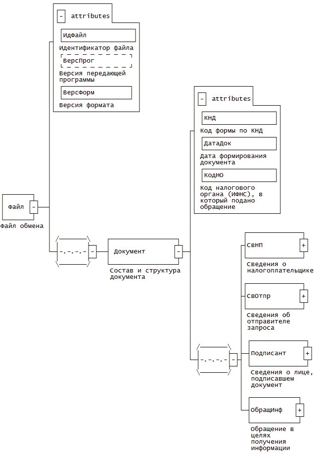 Обращение - формируемый налогоплательщиком (представителем) электронный документ в налоговый орган по месту постановки на учет налогоплательщика, месту нахождения его обособленных подразделений, месту жительства физического лица, а также по месту нахождения принадлежащих им недвижимого имущества, транспортных средств и иным основаниям, предусмотренным Налоговым кодексом Российской Федерации в целях получения информации (приложение N 2 к Методическим рекомендациям).