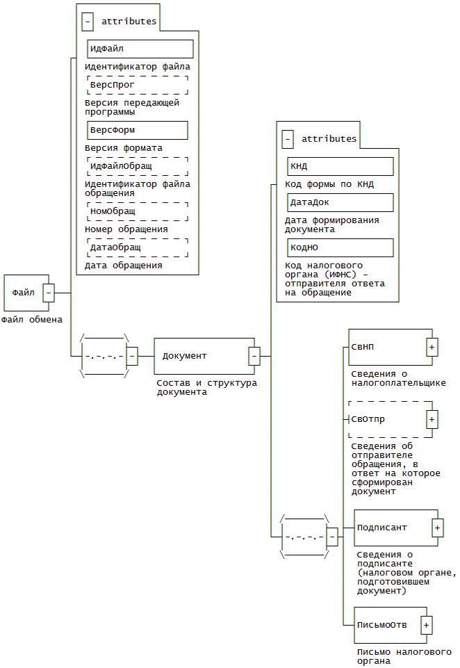 4. Логическая модель файла обмена представлена в виде диаграммы структуры файла обмена на рисунке 1 настоящего формата. Элементами логической модели файла обмена являются элементы и атрибуты XML файла. Перечень структурных элементов логической модели файла обмена и сведения о них приведены в таблицах 4.1 - 4.36 настоящего формата.
