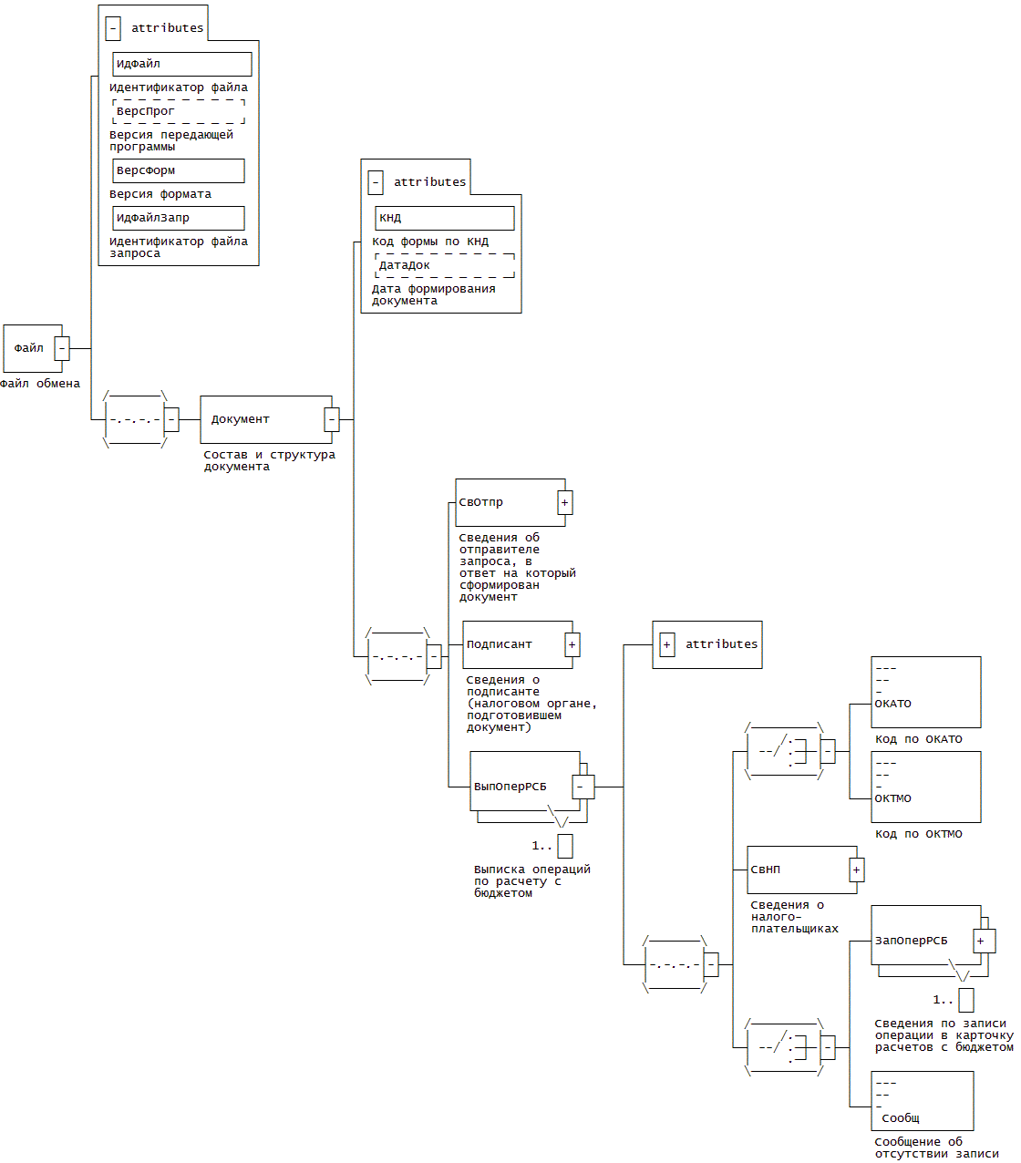 | Дата конца периода, за который производится выписка операций по расчету с бюджетом | ДатаКонПер | А | T(=10) | О | Типовой элемент <ДатаТип>. Дата в формате ДД.ММ.ГГГГ |