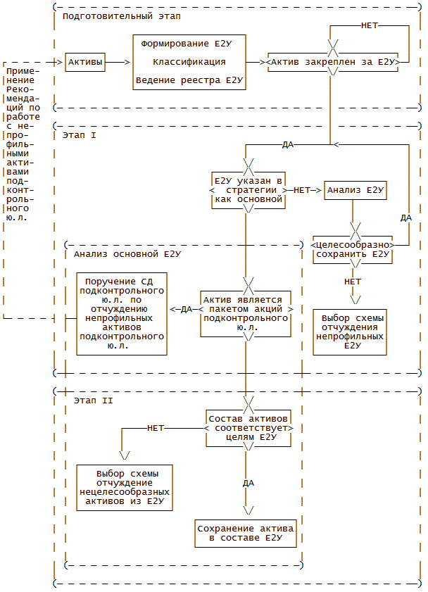 3.5. Общая схема проведения анализа активов и Е2У в рамках подготовки и реализации программ отчуждения непрофильных активов представлена в Приложении 2.