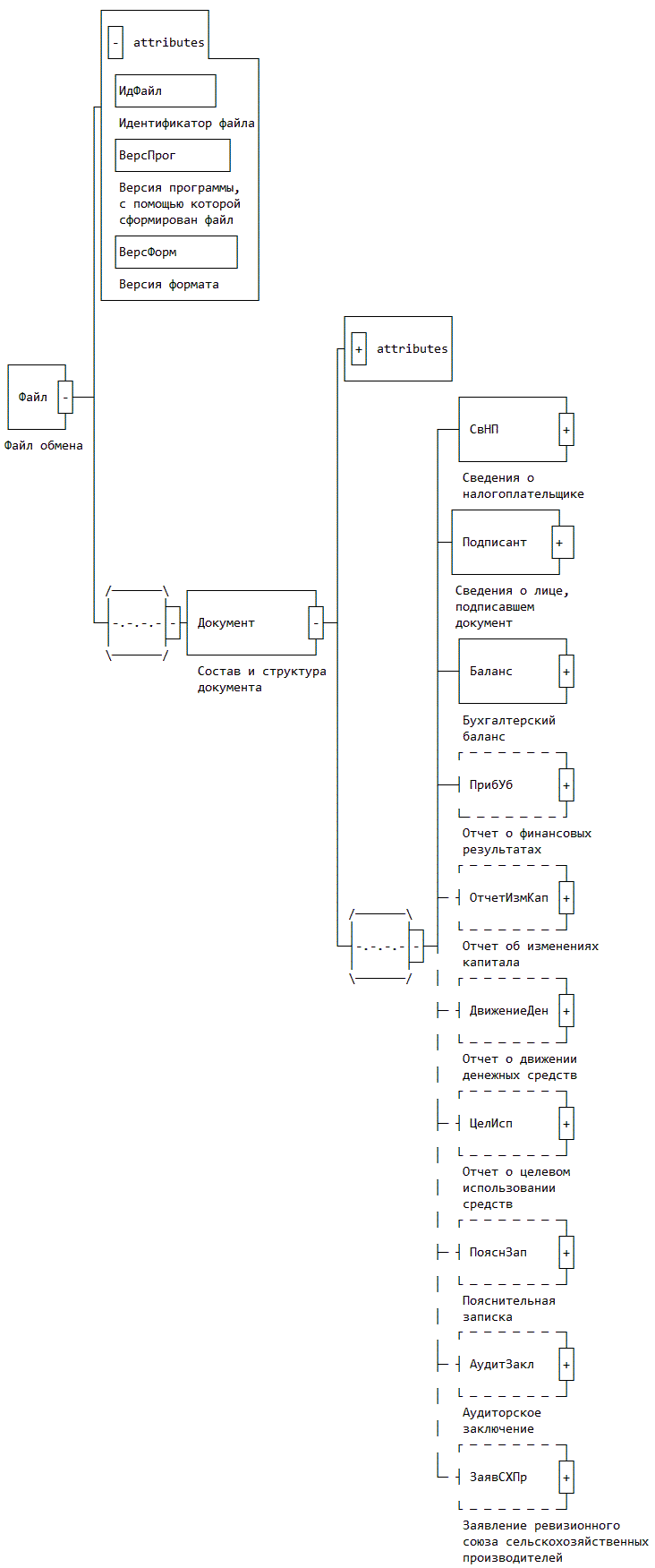 XML схема файла обмена приводится отдельным файлом и размещается на сайте Федеральной налоговой службы.