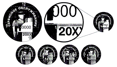 1. Знак "Сервисное обслуживание" представляет собой объемное голографическое изображение на саморазрушающейся основе, выполненное на фотополимерной пленке.