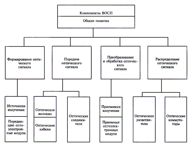| 1. Компонент волоконно-оптической системы передачи Компонент ВОСП | Изделие оптики, оптоэлектроники или оптико-механическое изделие, являющееся частью волоконно-оптической системы передачи, которое может быть выделено как самостоятельное изделие с точки зрения требований к испытаниям, приемке, поставке и эксплуатации, и предназначенное для выполнения одной или нескольких функций по формированию, передаче, распределению, преобразованию и обработке оптического сигнала |