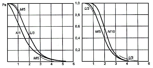 Оперативные характеристики, приведенные на графиках под таблицами В1 - В10, строятся на основе пауссоновского или биномиального распределения. При больших значениях (более 0,90) расчетной оперативной характеристики фактическая вероятность приемки будет выше, а при малых значениях (меньше 0,10) фактическая вероятность меньше, чем расчетная.