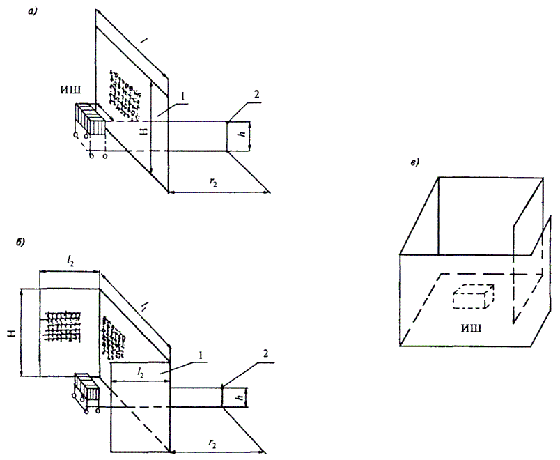 В залах с относительно большой высотой и шириной наибольшая опасность прихода первых отражений с недопустимым запаздыванием возникает в первых рядах зрительских мест. Для исправления этого явления следует выполнять специальные звукоотражающие конструкции на потолке и стенах в припортальной зоне. Принципиальная схема таких конструкций приведена на рисунке 7.