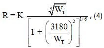 Зависимости (11) и (12) справедливы для значений R_x, больших величины R_k = 0,2 и меньших R_k = 24. В случае R_k < 0,2 величина P_x полагается равной 18, а в выражение (12) подставляется значение R_x = 0,142.