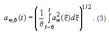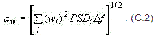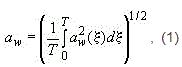3.1.5.1 среднеквадратичное значение корректированного ускорения a_w: Усредненная по времени поступательная или угловая вибрация, определяемая формулой