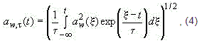 3.1.5.3 текущее среднеквадратичное значение корректированного ускорения a_w,(t): Среднеквадратичное значение корректированного ускорения в момент времени t, определяемое формулой