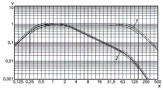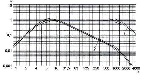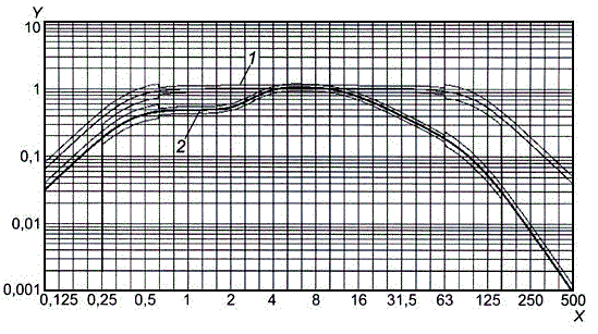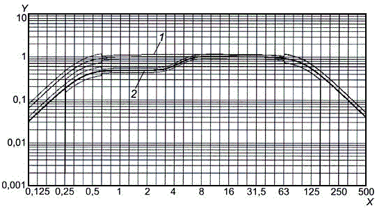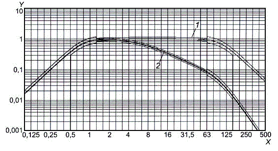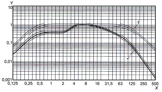 h) чтобы получить значения зависимости на промежуточных частотах, изменить значения частот на коэффициент 3^0,2 (соответствует 95 % трети октавы) и повторить шаги b) - е);