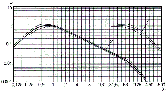 l) подогнать экспериментальную зависимость под теоретическую, полученную на шаге k), соответствующим выбором постоянной составляющей. Обычно это не составляет труда, поскольку типичная фазовая характеристика, приведенная к логарифмическому масштабу по обеим осям, близка к линейной в широком диапазоне частот. Это справедливо для всех функций частотной коррекции, рассматриваемых настоящим стандартом;
