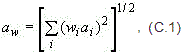 где a_wx, a_wy и a_wz - среднеквадратичные значения корректированного ускорения в направлении трех ортогональных измерительных осей х, у и z соответственно;