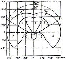 очень часто используемые и наиболее важные органы управления должны быть расположены в зоне 1 (черт. 3);