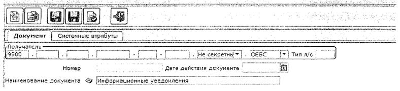 В случае отправки Участником документооборота бюджетной отчетности через ППО СУФД используется пункт меню "Произвольные" -> "Информационные сообщения" -> "Информационное сообщение". При создании документа поля "Получатель" необходимо заполнить в соответствии с рис. 1, в поле "Наименование документа" необходимо выбрать "Информационные уведомления" и в поле "Ответственный" необходимо указать ответственного от Участника документооборота.