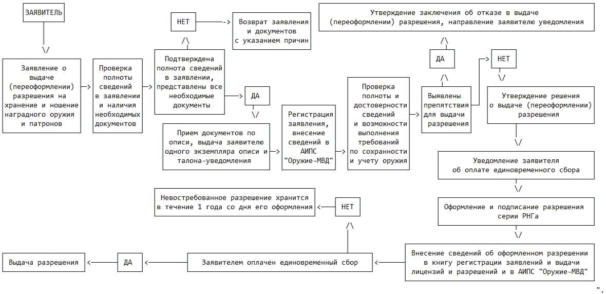 24. В Административном регламенте исполнения Министерством внутренних дел Российской Федерации государственной функции по контролю за оборотом гражданского, служебного и наградного оружия, боеприпасов, патронов к оружию, сохранностью и техническим состоянием боевого ручного стрелкового и служебного оружия, находящегося во временном пользовании у граждан и организаций, а также за соблюдением гражданами и организациями законодательства Российской Федерации в области оборота оружия, утвержденном приказом МВД России от 29 июня 2012 г. N 646 <1>: