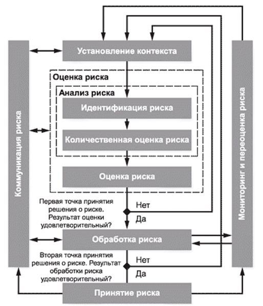 Менеджмент риска ИБ должен быть непрерывным процессом. В рамках данного процесса следует устанавливать контекст, оценивать и обрабатывать риски, используя для реализации рекомендации и решения плана обработки рисков. До принятия решения о том, что и когда должно быть сделано для снижения риска до приемлемого уровня, в рамках менеджмента риска анализируется, что может произойти и какими могут быть возможные последствия.