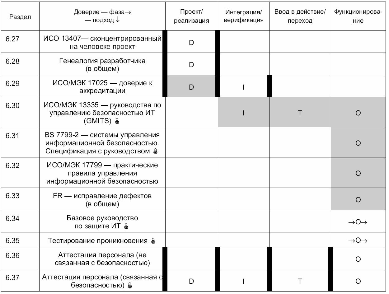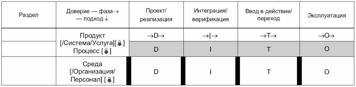 1. Конкретный метод обеспечения доверия может охватывать какую-то фазу жизненного цикла только приблизительно. В этом случае эта фаза отсутствует в графическом представлении.