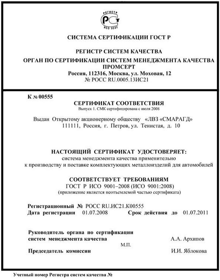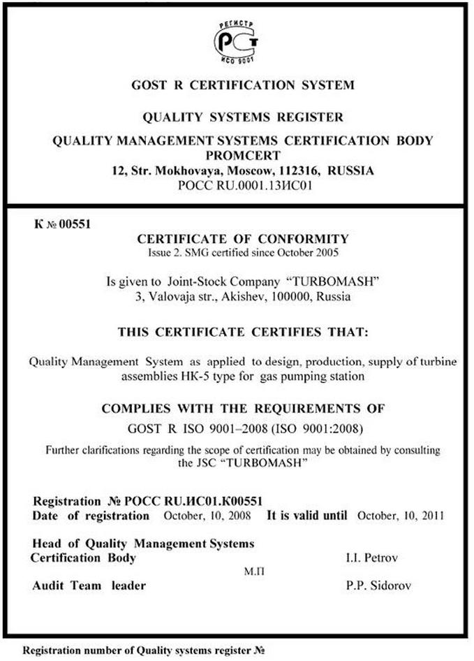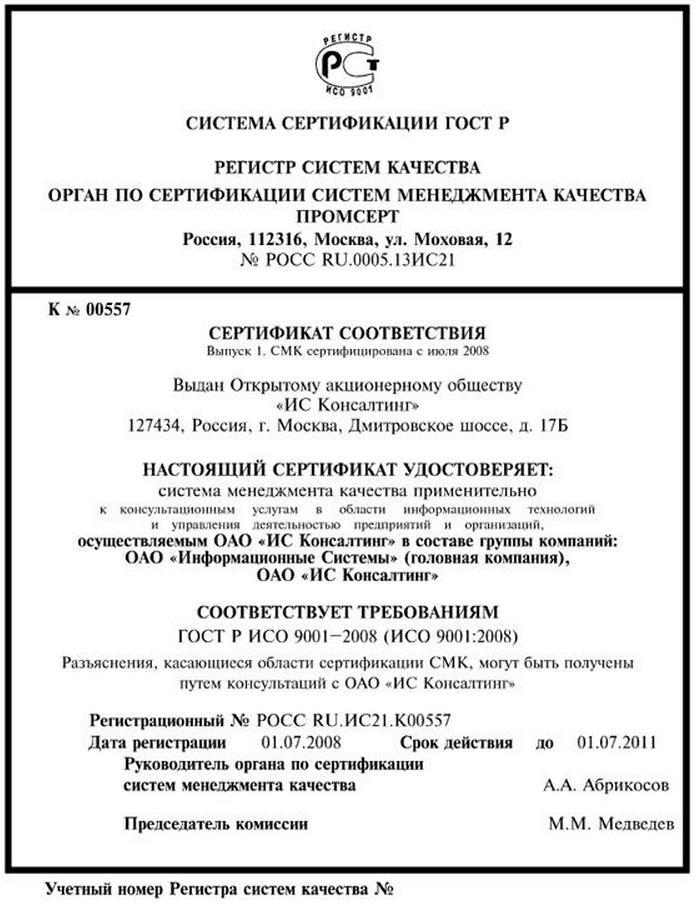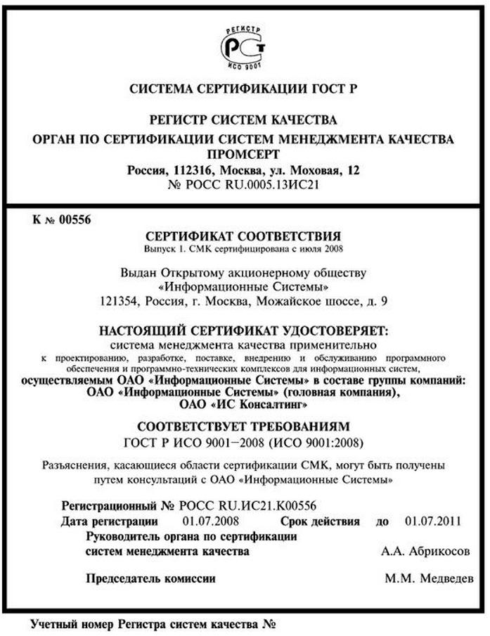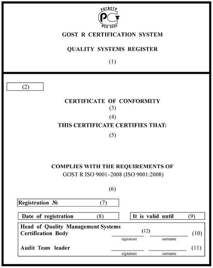 GOST R Certification System. Register of Quality Systems. Certification procedure of quality management systems to accordance with GOST R ISO 9001-2008 (ISO 9001:2008)