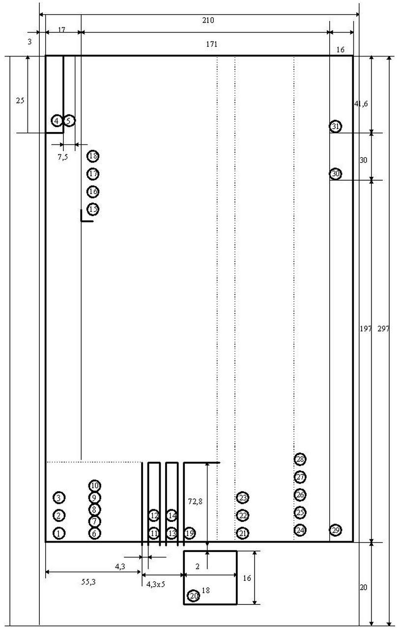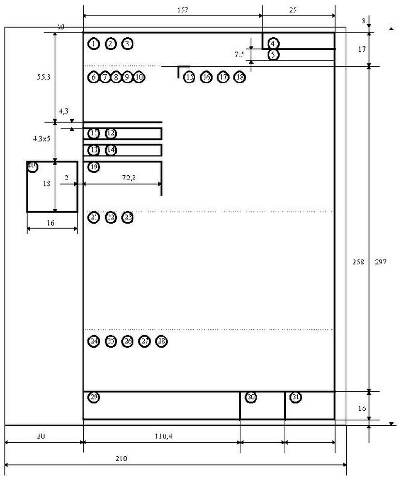 2.14. Ограничительные отметки для полей и отдельных реквизитов наносятся на бланк в виде уголков или других обозначений. Допускается наносить на бланки отметки для фальцовки и для пробивки отверстий дыроколами.
