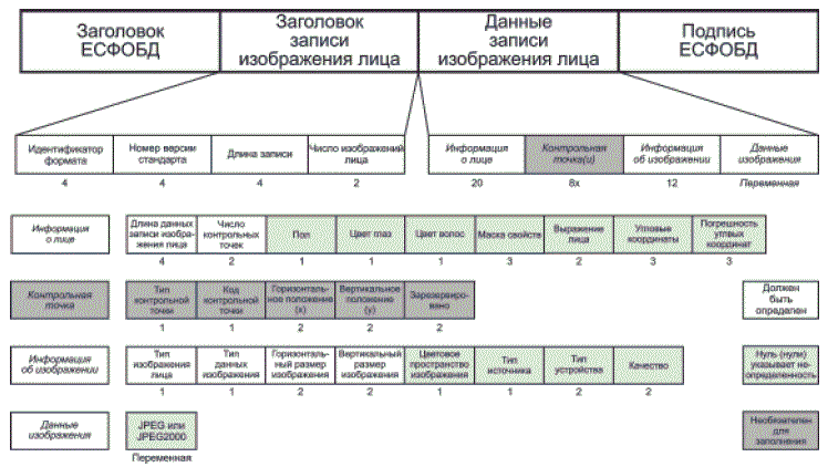 - формату записи данных для хранения, регистрации и передачи информации об одном или более изображениях лица в структуре данных ЕСФОБД;