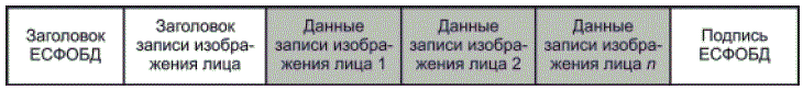 Одна запись может содержать несколько изображений лица одного человека. Это обеспечивается включением нескольких областей данных записи изображения лица после заголовка записи изображения лица перед блоком подписи ЕСФОДБ. Структура такой записи показана на рисунке 3.