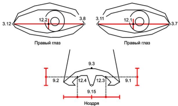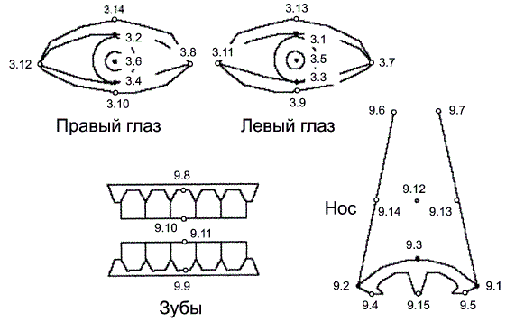 4.19. контрольные точки (feature points): Заранее определенные точки на изображении лица, используемые алгоритмами распознавания лица.