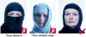 Вышеуказанные требования установлены для следующих типов изображения лица: