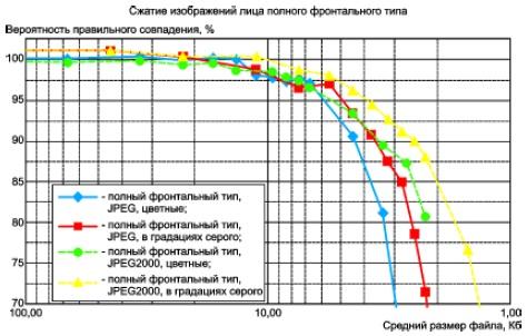 Основной задачей данного исследования являлась оценка того, насколько изображение лица может быть сжато без существенного уменьшения вероятности правильного совпадения (не более чем на 1 % - 2 %) по сравнению с результатами, достигаемыми без сжатия.