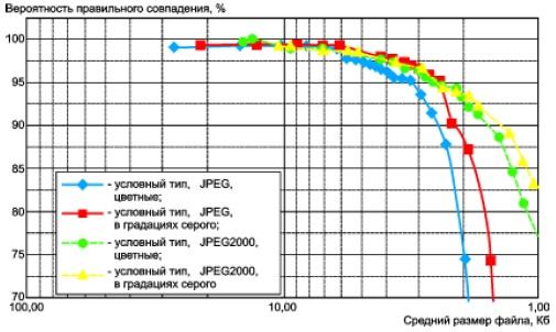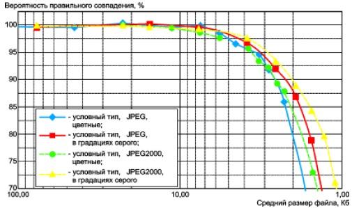 Рисунок 16 - Технология Identix: зависимость результатов распознавания лица от степени сжатия изображений условного фронтального типа