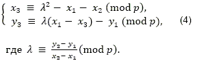 Эллиптической кривой Е, определенной над конечным простым полем F_p (где p>3 - простое число), называется множество пар чисел (x, y), x, y F_p, удовлетворяющих тождеству