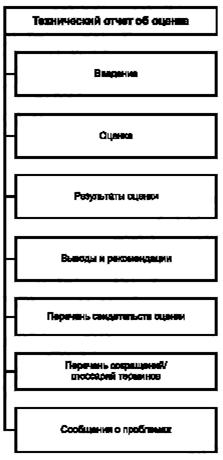 i) структура конкретного содержания документальных сообщений (отчетов), разрабатываемых при оценке ЗБ, - система оценки может иметь установленный формат для всех сообщений (отчетов), детализирующих результаты оценки, будь это оценка ОО или ЗБ;