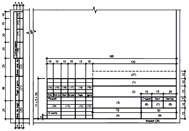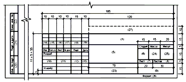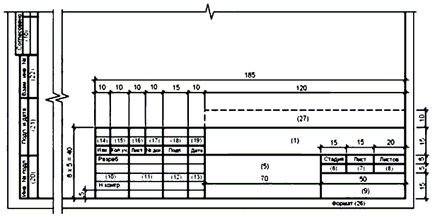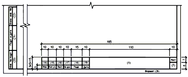 - поле 15 - для дополнительных граф основной надписи в соответствии с Приложением Ж. Допускается сведения, содержащиеся в этих графах, приводить в другой форме в соответствии с требованиями, установленными в стандартах организации.