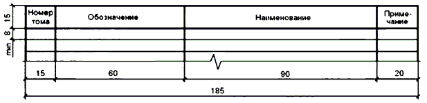 - в графе "Наименование" - наименование документа (тома) в точном соответствии с наименованием, указанным на его титульным листе;