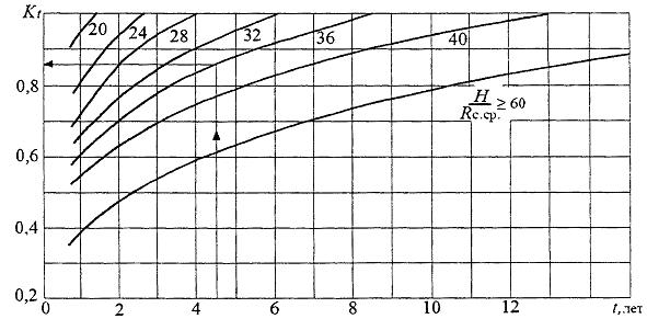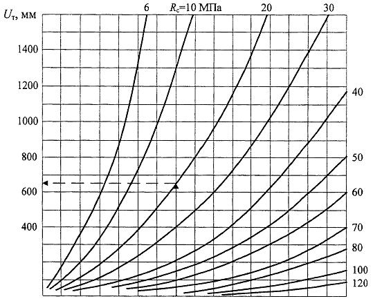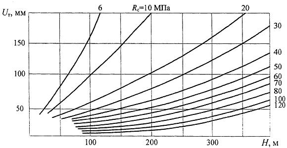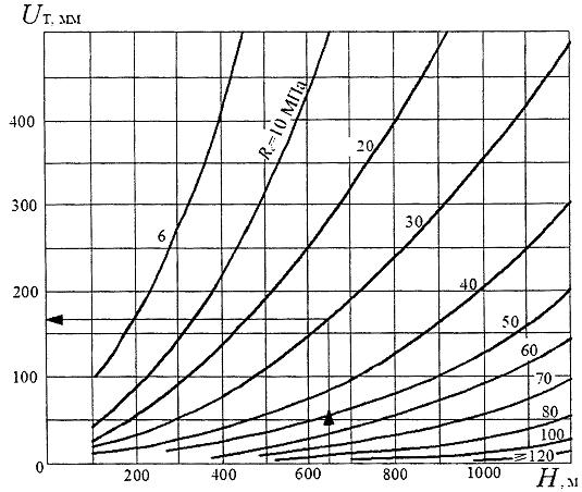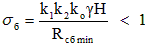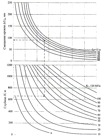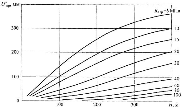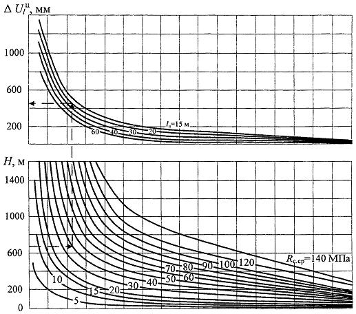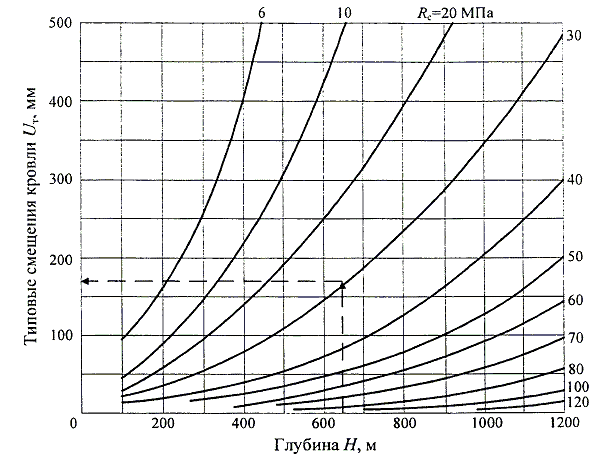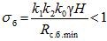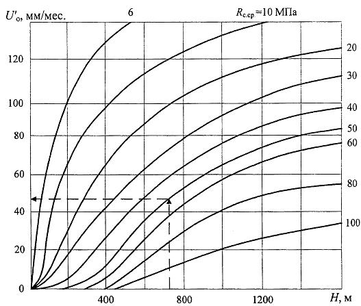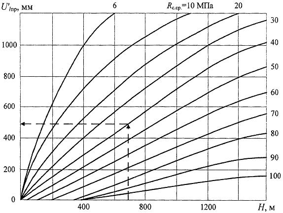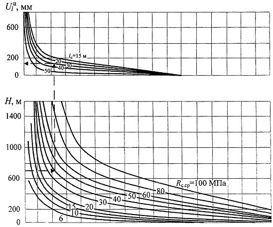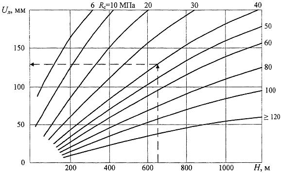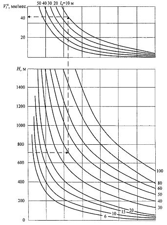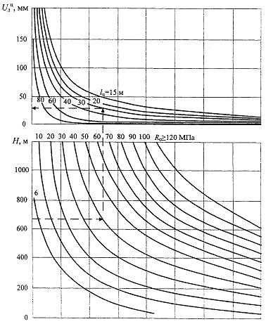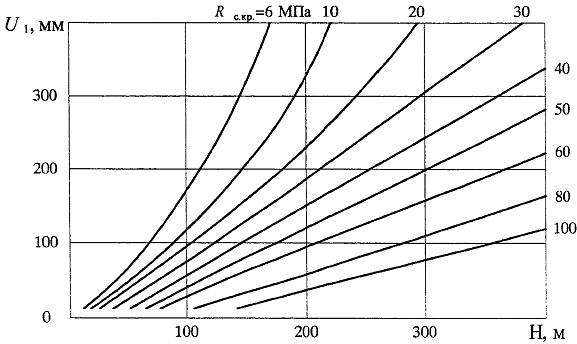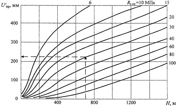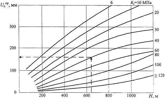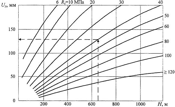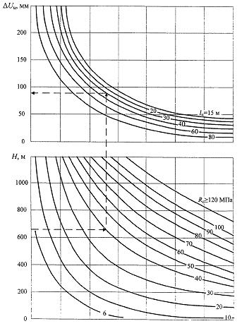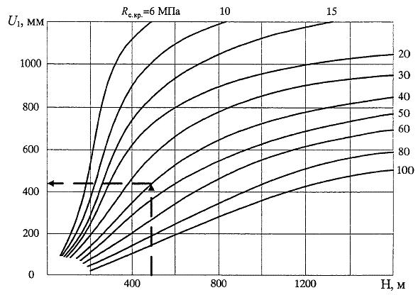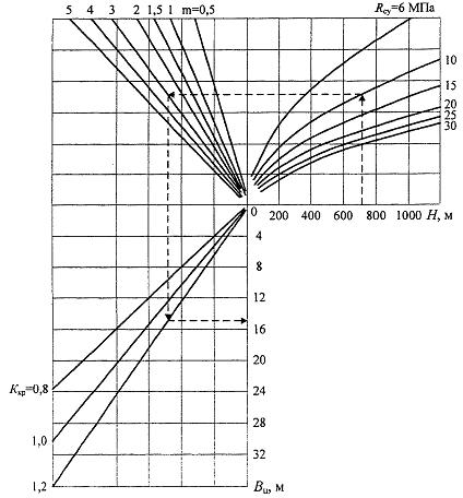 отношение глубины проведения горной выработки или сопряжения от дневной поверхности H, м к расчетному сопротивлению пород и угля в кровле на одноосное сжатие , МПа - не более 25. При величине отношения от 25 до 30 - крепление выработок и сопряжений необходимо осуществлять по двухуровневой схеме с применением анкеров глубокого заложения;