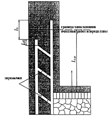 зона опорного давления - часть массива пород в пределах влияния очистных работ, в котором напряжения больше, чем в нетронутом массиве;