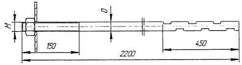 1 - стержень анкера, 2 - полувтулки, 3 - шайба опорная, 4 - гайка. Материал стержня - ВСт3