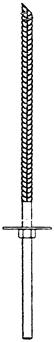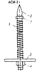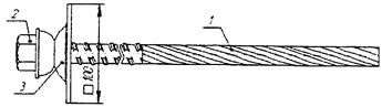 Рис. 16. Стеклопластиковый полимерный анкер АС-14Ш. 1 - стержень анкера, 2 - гайка, 3 - опорная шайба. Прочность на срез - 50 кН. Допускаемая нагрузка на срез - 39 кН. Масса - 0,7...0,85 кг