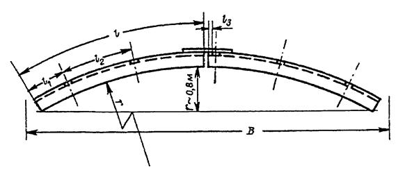 Рис. 9. Составной арочный верхняк из швеллера или спецпрофиля для горных выработок шириной B от 4,5 до 5,5 м