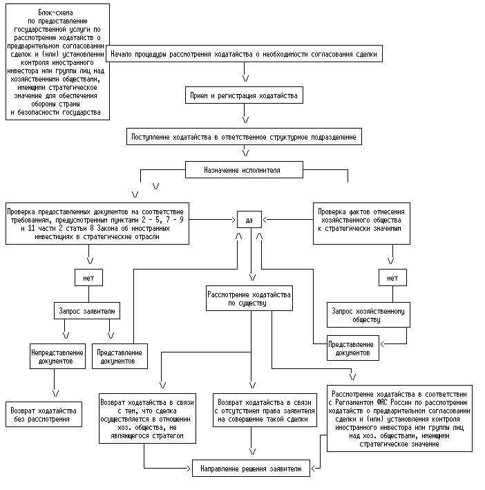 ОБ УТВЕРЖДЕНИИ АДМИНИСТРАТИВНОГО РЕГЛАМЕНТА ФЕДЕРАЛЬНОЙ АНТИМОНОПОЛЬНОЙ СЛУЖБЫ ПО ПРЕДОСТАВЛЕНИЮ ГОСУДАРСТВЕННОЙ УСЛУГИ ПО РАССМОТРЕНИЮ ХОДАТАЙСТВ О ПРЕДВАРИТЕЛЬНОМ СОГЛАСОВАНИИ СДЕЛОК И (ИЛИ) УСТАНОВЛЕНИИ КОНТРОЛЯ ИНОСТРАННОГО ИНВЕСТОРА ИЛИ ГРУППЫ ЛИЦ НАД ХОЗЯЙСТВЕННЫМИ ОБЩЕСТВАМИ, ИМЕЮЩИМИ СТРАТЕГИЧЕСКОЕ ЗНАЧЕНИЕ ДЛЯ ОБЕСПЕЧЕНИЯ ОБОРОНЫ СТРАНЫ И БЕЗОПАСНОСТИ ГОСУДАРСТВА
