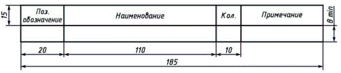 Продолжение перечня элементов помещают слева от основной надписи, повторяя головку таблицы.