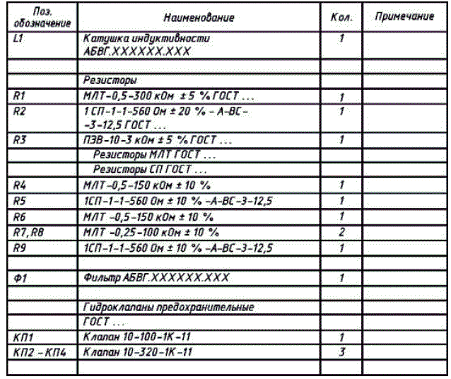 Перечень элементов записывают в спецификацию после схемы, к которой он выпущен.