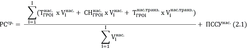 РС(ср.) - средняя региональная составляющая розничной цены на газ;
