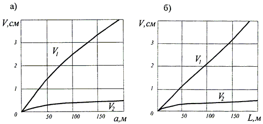 Таблица составлена для условий равенства диаметров камуфлетных и компенсационных скважин. Коэффициент разрыхления принят равным 1,15. Средние значения исходных напряжений 75 МПа, средний модуль упругости пород МПа, допускаемые (безопасные) напряжения составляют 70% от исходных.